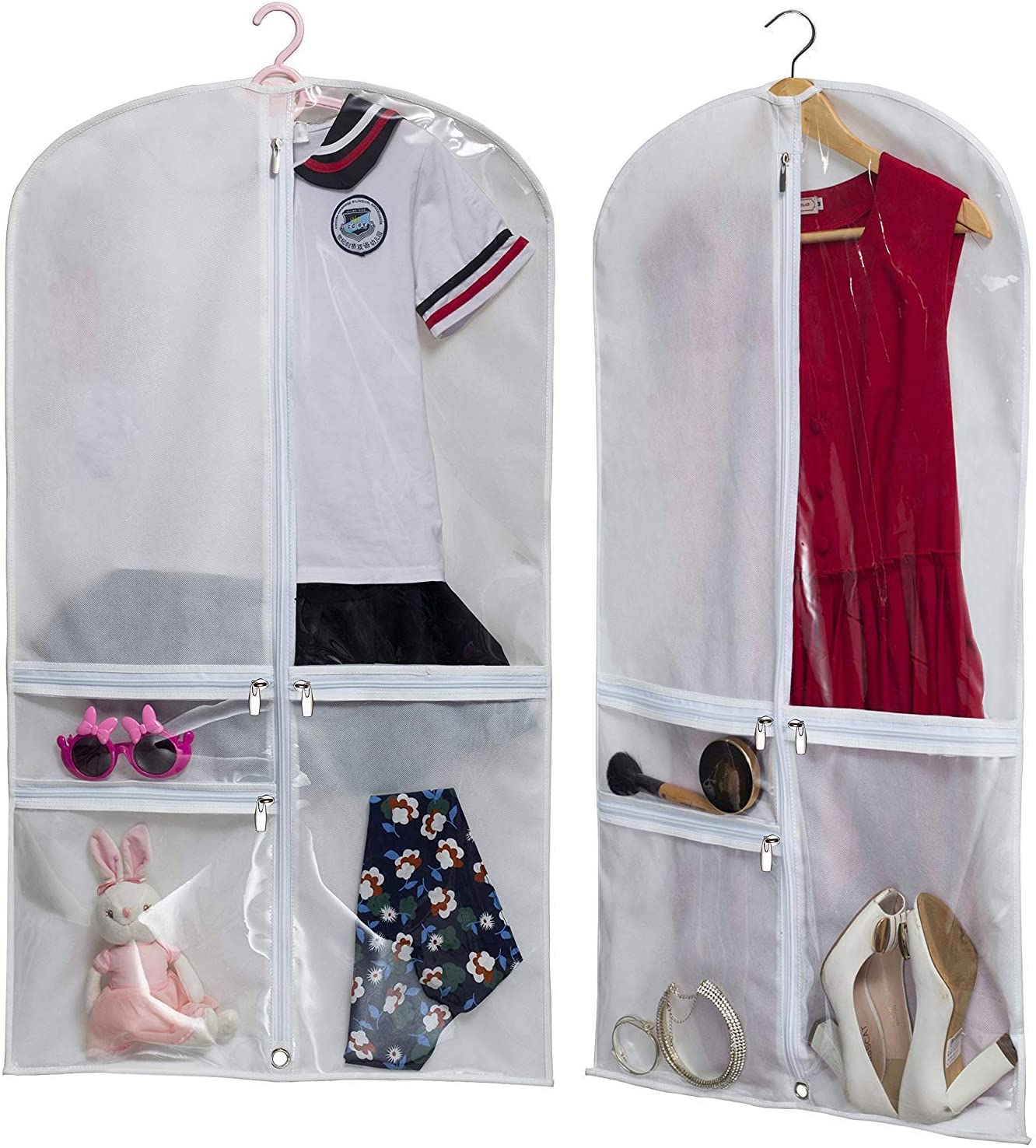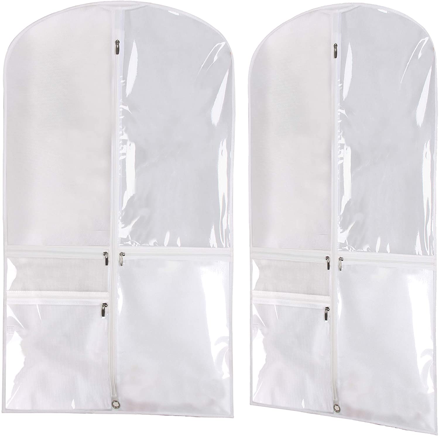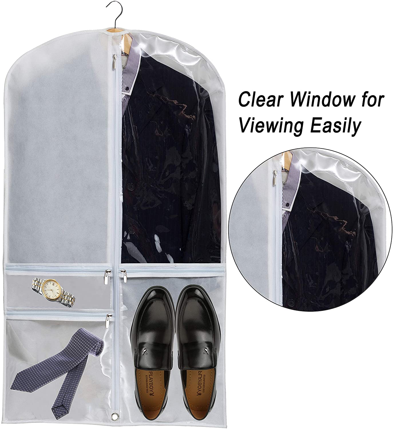 - Designed with a large transparent window, you can find your clothes conveniently without opening the garment bags. Perfect dress bag Works well in home closet or travel storage.
