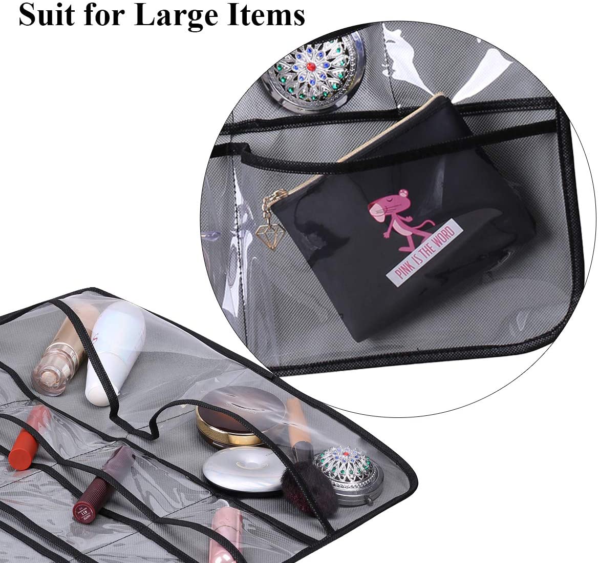 - Dimension: Small pockets for earrings, creid cards, watch, large pockets roomy enough for purse, chunky bracelets, big makeups or cosmetic brush,small pockets: 2.2"* 3.9"; large pockets: 8.3"* 5.2"; overall: 16.9"* 35.8";