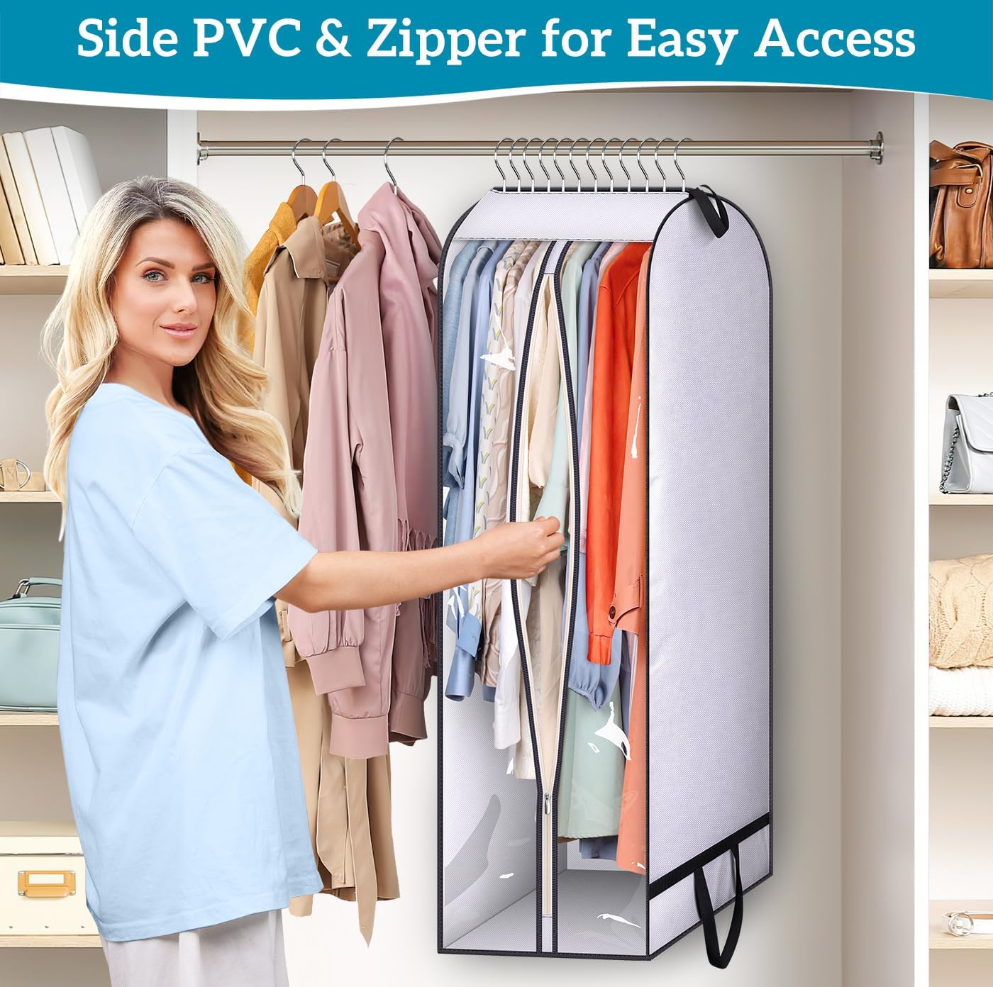 - Easy to Find Clothes: Clear PVC side and smooth metal zipper enable easy identification of items without unzipping garment bags for hanging clothes, facilitating quick access to your clothes without the need to lay the suit bag down.