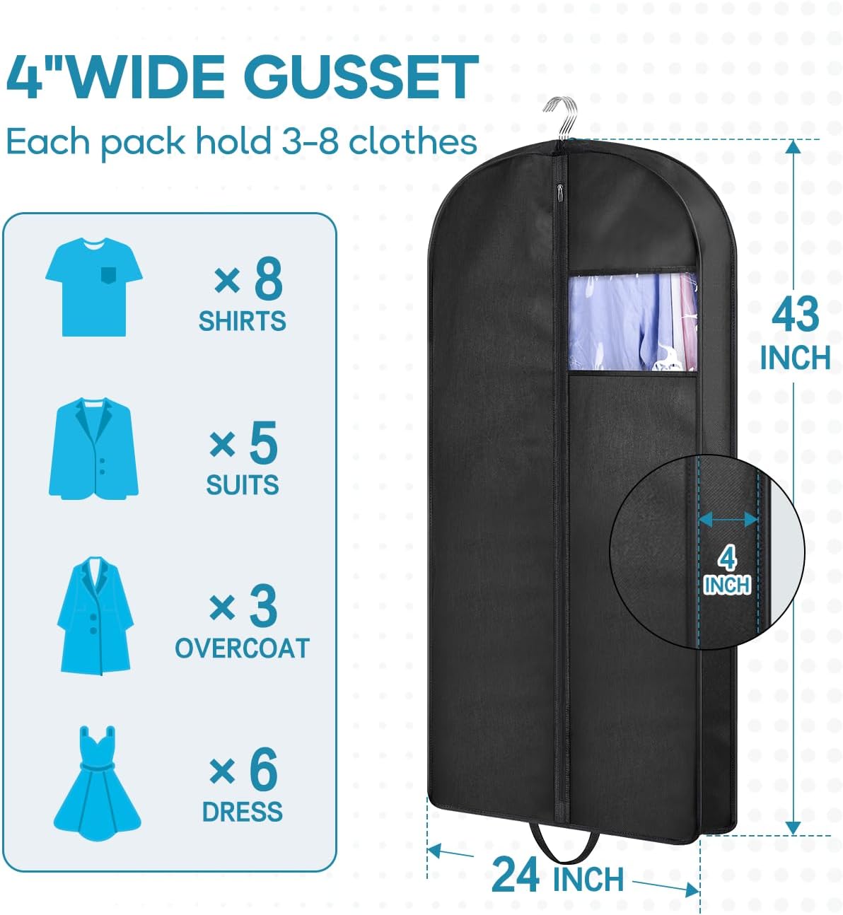 Ideal Length: Size of 43" x 24" x 4", making heavy duty garment bags great for wardrobe closet, coat bags for closet storage suitable for store suits, shirts, dress, sweaters, jackets, trousers, tops, sport coats, blouse, winter coat etc, keeping closet tidy and organized.
