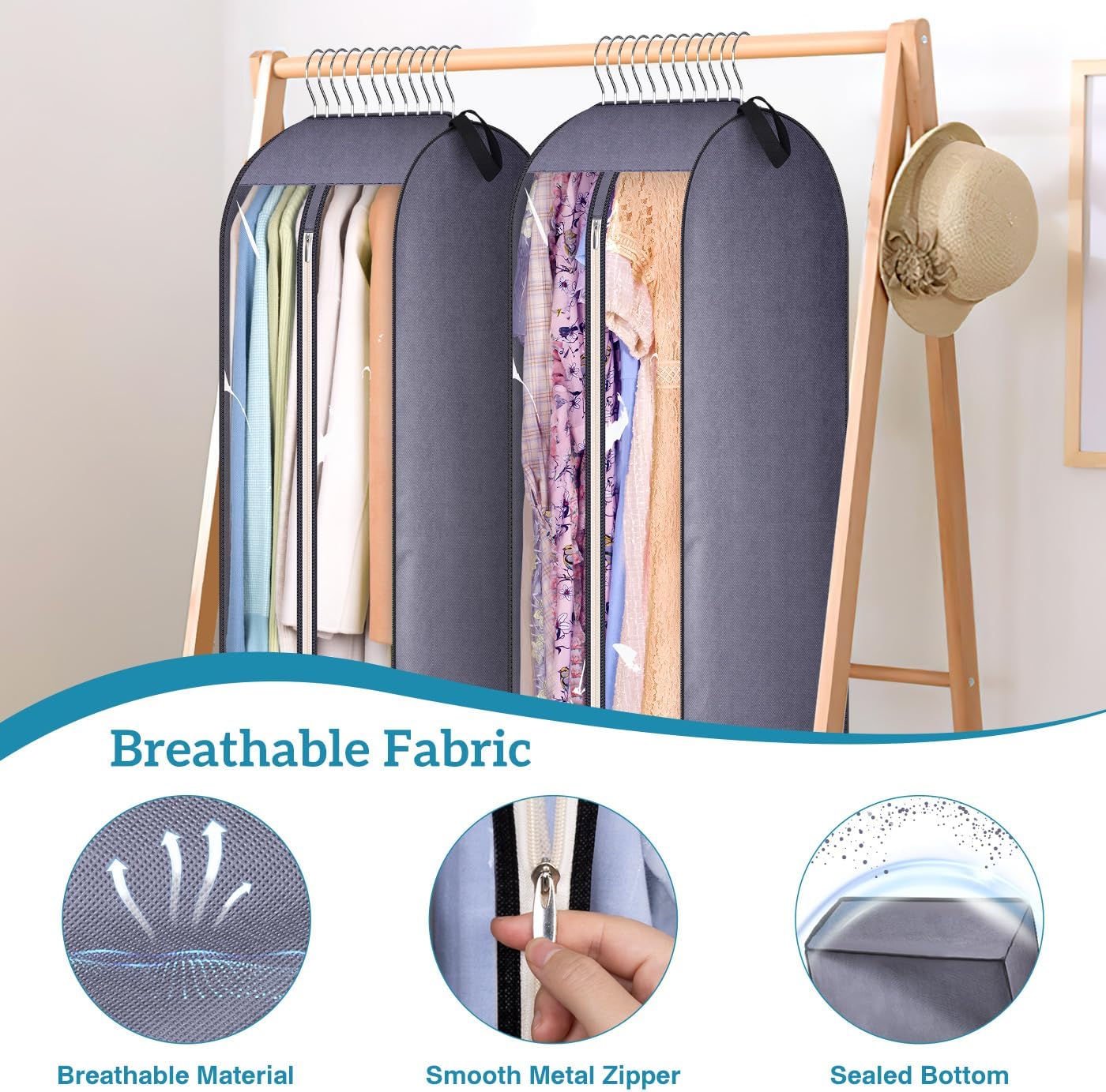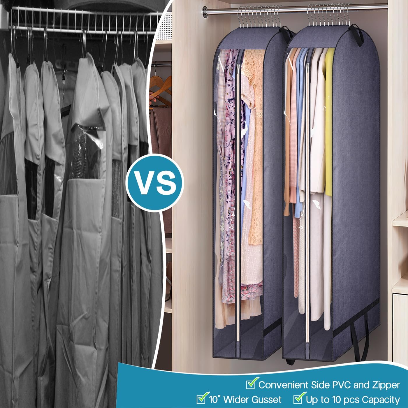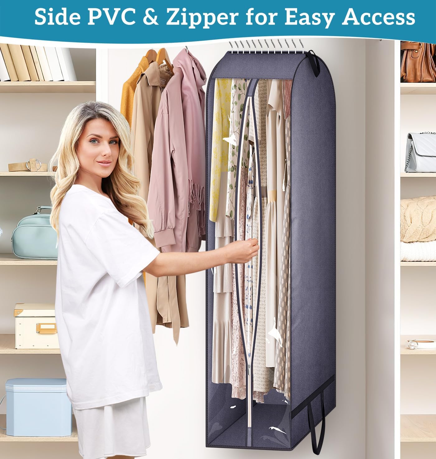 - Easy to Find Clothes: Clear PVC side and smooth metal zipper enable easy identification of items without unzipping garment bags for hanging clothes, facilitating quick access to your clothes without the need to lay the suit bag down.