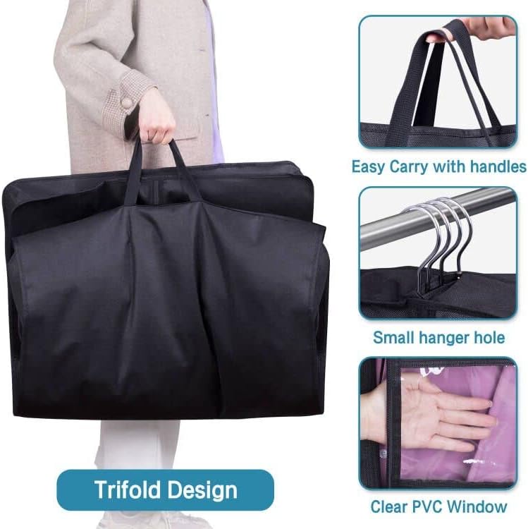 Trifold: There is a handle at each end, 2 handles allow you to transport without dragging your full length gowns on the ground, foldable suit bags for men travel which can fold up to carry suitable for occasional travel, camping, gym, cruise, road trip.