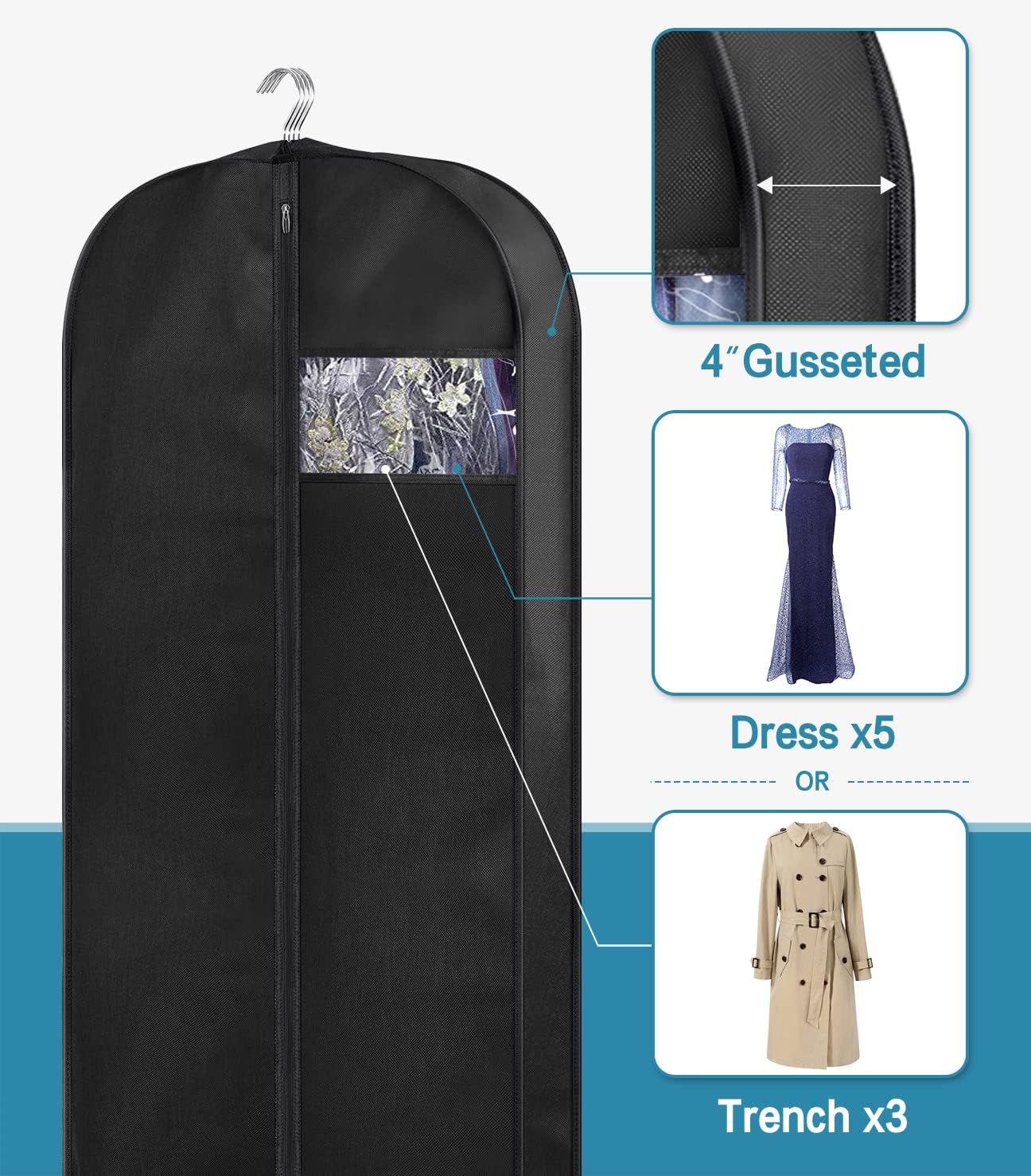 KIMBORA 60" Gusseted Hanging Garment Bags Black(3 Packs)
