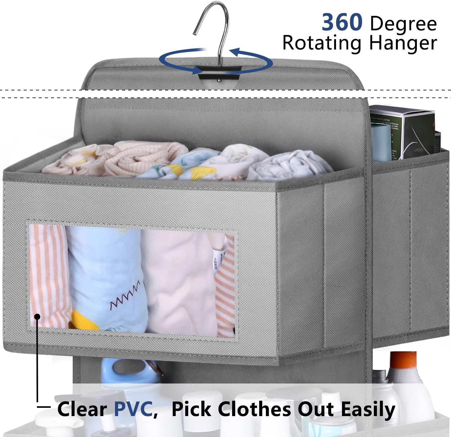 【Clear Window and Rotating Hanger】: The clear plastic fronts of the hanging closet storage make it possible for you to see what's in each pocket, also open up design help small accessories won't fall out; a sturdy 360 degree swivel hanger on the effortlessly hangs on any standard closet rod, improve your closet organizing that provides great visibility.